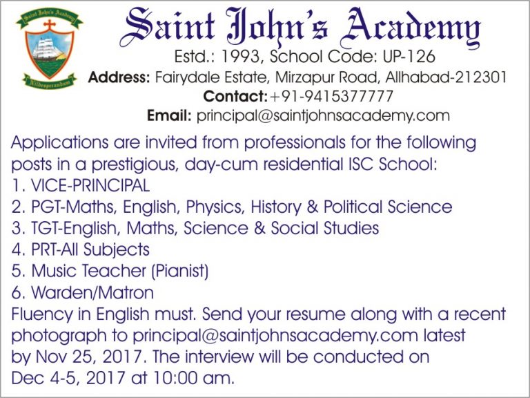 Applications are invited from professionals for the following posts in a prestigious, day-cum residential ISC School: 1. VICE-PRINCIPAL 2. PGT-English, Maths, Physics, History & Political…